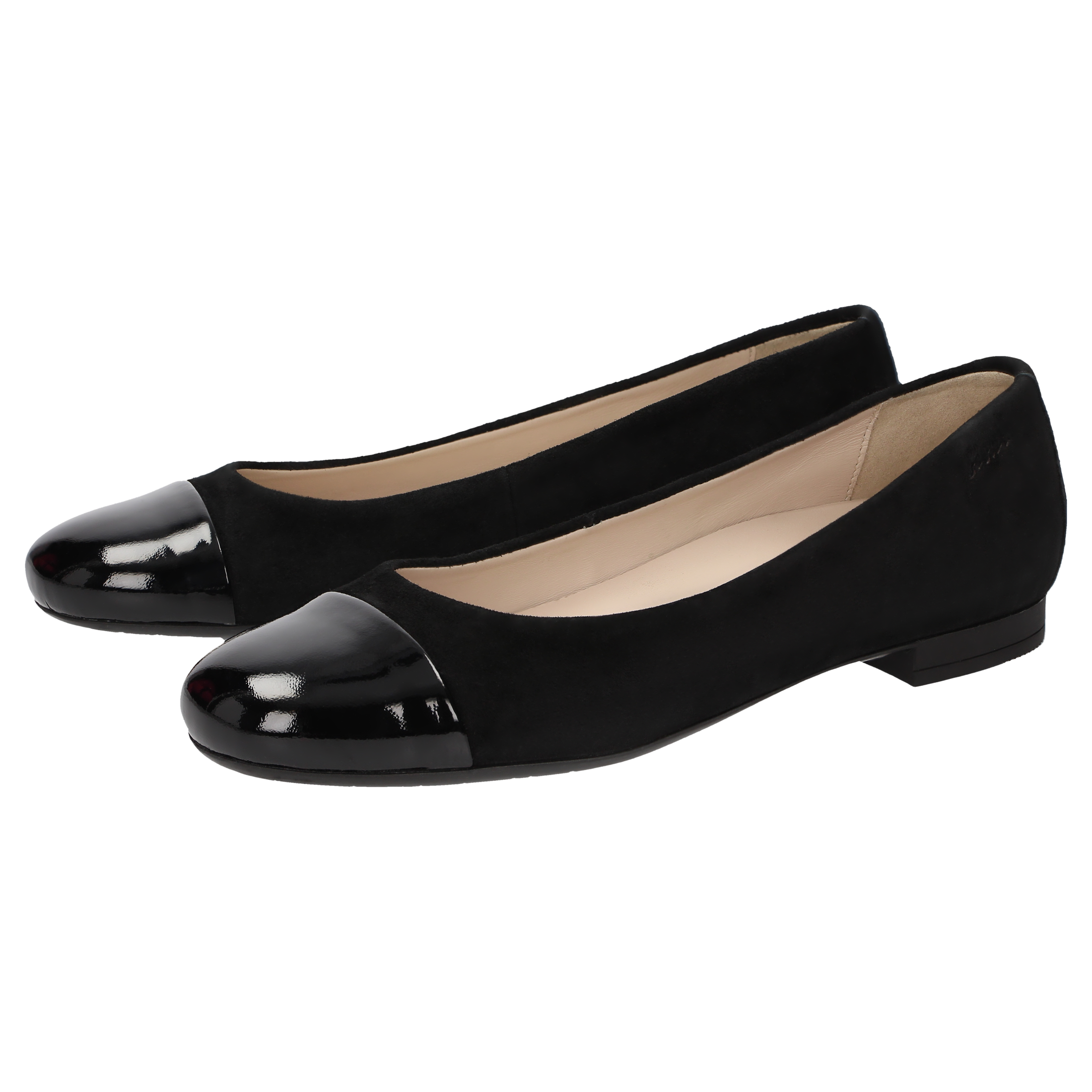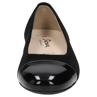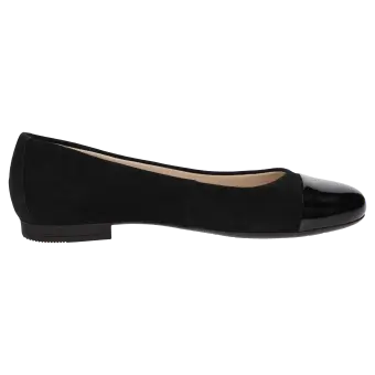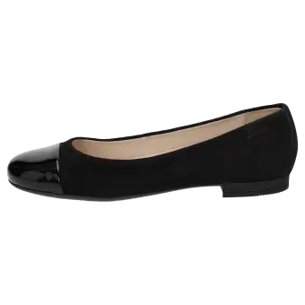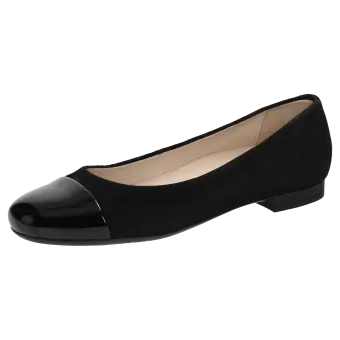 Dieser Ballerina-Schuh ist die perfekte Wahl für stilbewusste Damen, die einen eleganten und komfortablen Schuh für den Alltag suchen. Das Obermaterial besteht aus einer edlen Kombination aus weichem Lammlackleder und Ziegenvelour, die dem Schuh eine luxuriöse Optik verleiht. Die normale Weite (G-Weite) sorgt für einen angenehmen Tragekomfort, während das Wechselfussbett es Ihnen ermöglicht, Ihre eigenen Einlagen nach Bedarf zu nutzen.