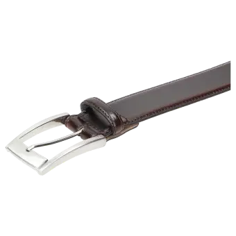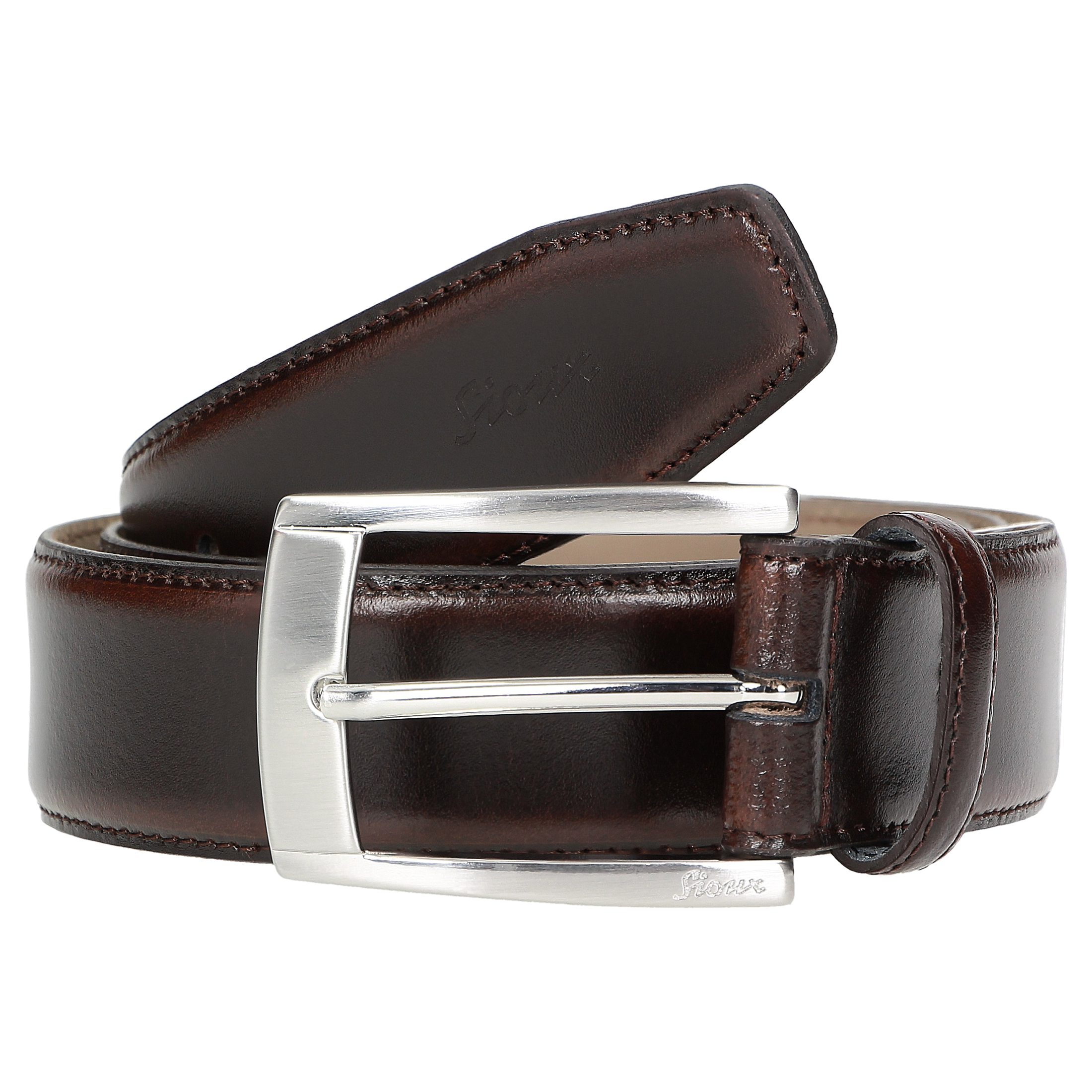 Mit einer feinen, polierten Schliesse und einer dünnen Randnaht. Der Herrenledergürtel ist 100% Made in Italy.
