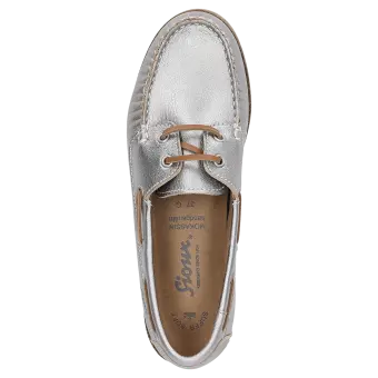 Dieser Mokassin für Damen ist die perfekte Wahl für alle, die Stil und Komfort suchen. Das Obermaterial aus hochwertigem Ziegenleder in metallic verleiht dem Schuh eine elegante Optik, während die normale Weite (G-Weite) optimalen Tragekomfort garantiert. Der Mokassin ist ein zeitloser Klassiker, der sich ideal für den täglichen Gebrauch eignet und Ihre Garderobe stilvoll ergänzt.