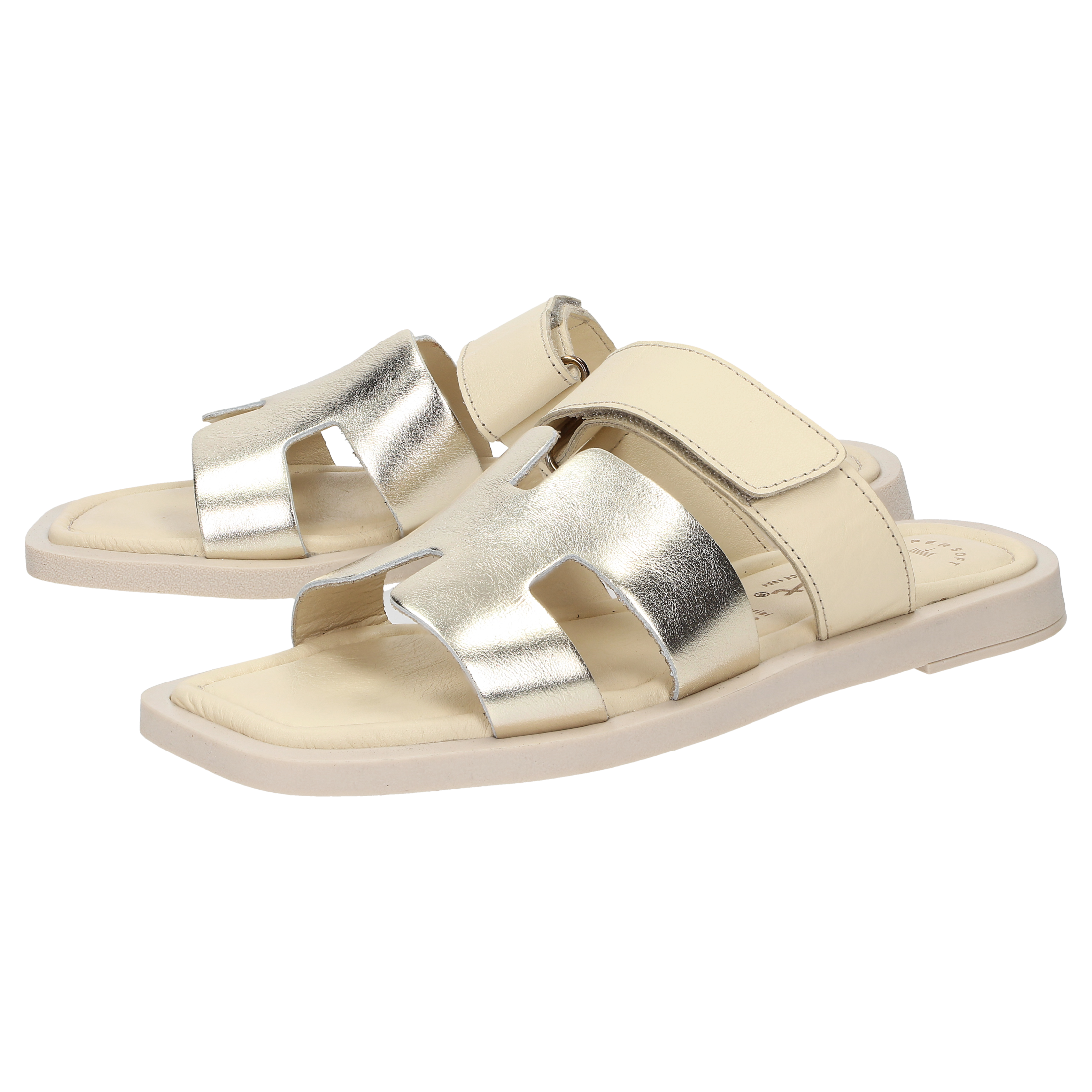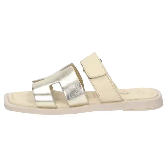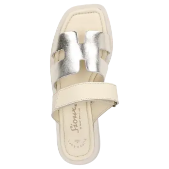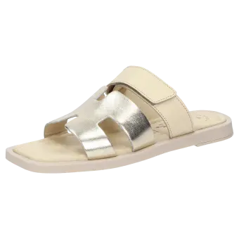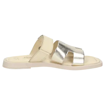Ein echter Hingucker: Diese Pantolette verbindet elegantes Leder mit edlen Metallic-Elementen. Inspiriert vom urbanen Chic bietet sie durch ihre weich gepolsterte Innensohle und die flexible Sohle ein federleichtes Laufgefühl - ideal für anspruchsvolle Trägerinnen, die Wert auf Komfort und modische Raffinesse legen. Das hochwertige Leder sorgt für ein angenehmes Fussklima - auch an warmen Sommertagen.