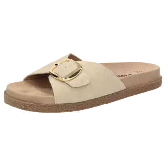 Diese Pantolette aus feinem Kalbvelour ist die perfekte Wahl für warme Sommertage. Das hochwertige Velourleder schmiegt sich angenehm an den Fuss und sorgt für einen edlen Look. Durch die normale G-Weite bietet die Pantolette optimalen Sitz und passt sich ideal an die natürliche Fussform an. Das geringe Schuhgewicht sorgt dafür, dass die Pantolette angenehm leicht am Fuss liegt - ideal für lange Tage an der frischen Luft. Die flexible Gummisohle verleiht der Pantolette sicheren Halt bei jedem Schritt und sorgt für ein angenehmes Laufgefühl. Die sorgfältige Verarbeitung macht diesen Sommerschuh zu einem verlässlichen Begleiter im Alltag und in der Freizeit. Perfekt für alle, die Wert auf Komfort und modernes Design legen.