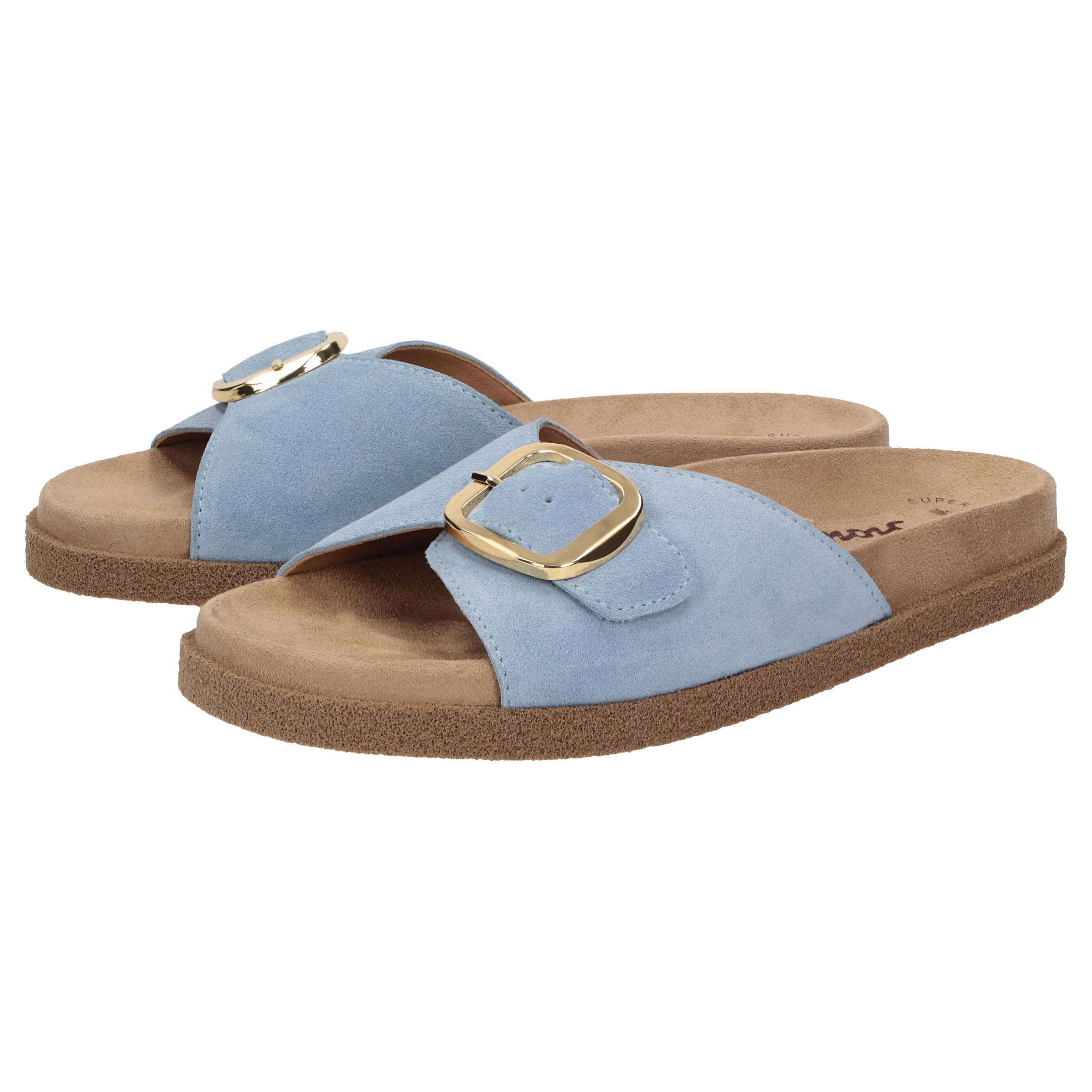 Diese Pantolette aus feinem Kalbvelour ist die perfekte Wahl für warme Sommertage. Das hochwertige Velourleder schmiegt sich angenehm an den Fuss und sorgt für einen edlen Look. Durch die normale G-Weite bietet die Pantolette optimalen Sitz und passt sich ideal an die natürliche Fussform an. Das geringe Schuhgewicht sorgt dafür, dass die Pantolette angenehm leicht am Fuss liegt - ideal für lange Tage an der frischen Luft. Die flexible Gummisohle verleiht der Pantolette sicheren Halt bei jedem Schritt und sorgt für ein angenehmes Laufgefühl. Die sorgfältige Verarbeitung macht diesen Sommerschuh zu einem verlässlichen Begleiter im Alltag und in der Freizeit. Perfekt für alle, die Wert auf Komfort und modernes Design legen.