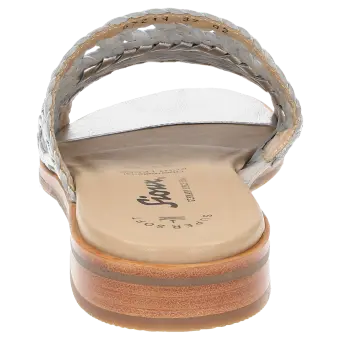Diese Sandale ist die perfekte Wahl für Ihre Sommeraktivitäten. Das Obermaterial aus hochwertigem Ziegenflechtleder in einem attraktiven Metallic-Finish verleiht dem Schuh eine elegante Optik und macht ihn zu einem stilvollen Begleiter. Dank der normalen Weite (G-Weite) bietet die Sandale optimalen Tragekomfort und passt sich angenehm an Ihren Fuss an.
