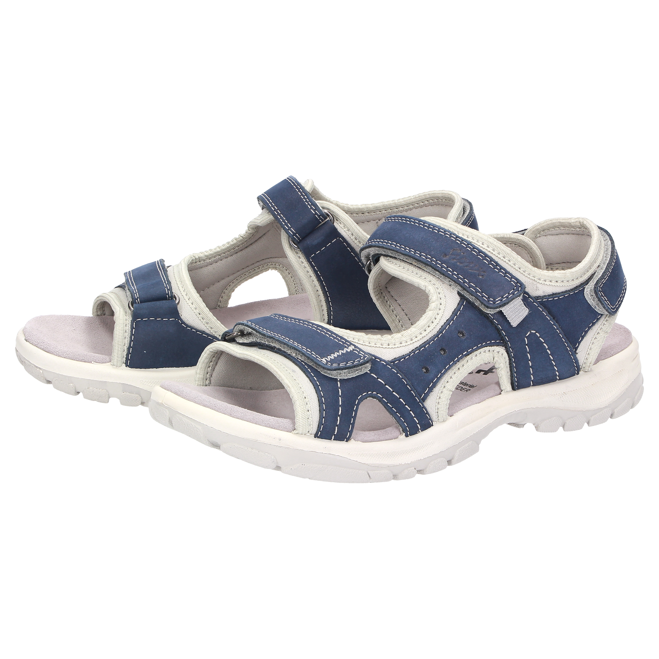 Sioux hat auch ansprechende Trekking-Sandalen für Frauen: Das markante Oberleder besteht aus Kalbnubuk, als Futter haben wir gepolstertes Neopren-Material verarbeitet. Das weiche Fussbett ergänzt sich optimal mit der weichen, profilierten Luftpolster-Laufsohle. Durch die Klettverschlüsse über den Vorfuss und über den Rist lässt sich die Sandale perfekt an den Fuss anpassen.