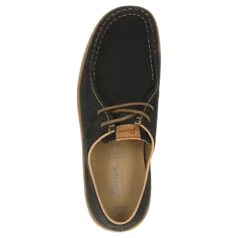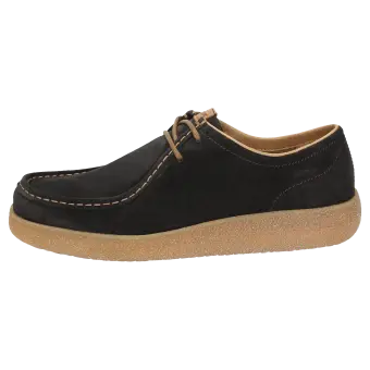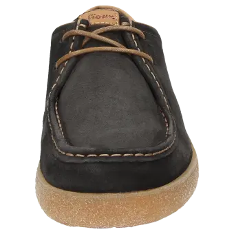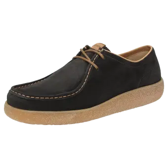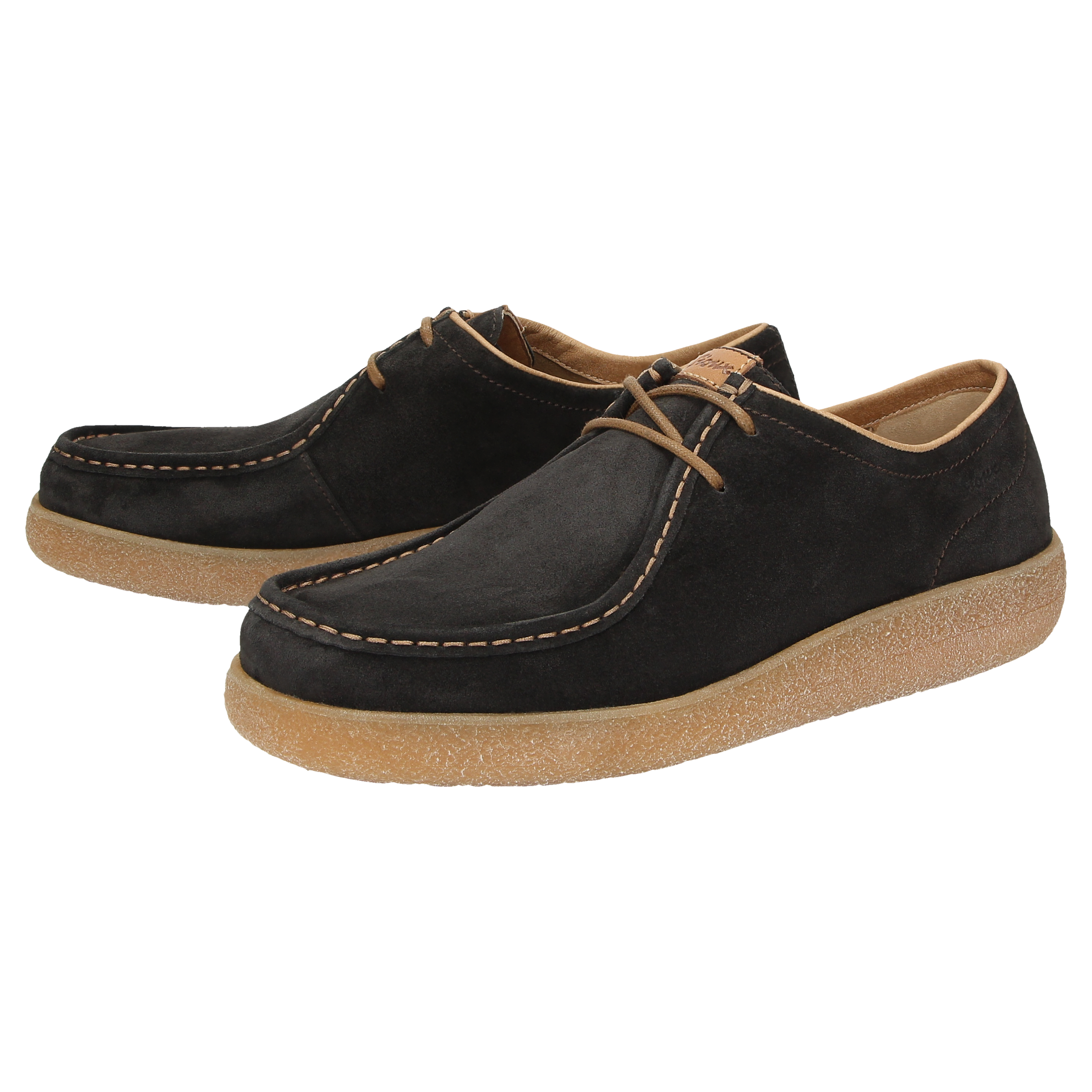 Die zeitgemässe Interpretation des Grashoppers: sportiver Schnürschuh aus gewachstem Kalb-Velourleder mit einer rustikalen Gummisohle in Krepp-Optik. Futter und der Bezug der Decksohle bestehen aus modernem Microfaser. Die bequeme Schuhweite G sorgt für optimale Zehenfreiheit und das weich gepolsterte Wechselfussbett ist zum Herausnehmen und Austauschen gegen die eigene Einlage.