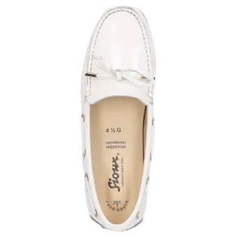 Dieser Mokassin ist ein stilvolles Damenmodell, das sich perfekt für Ihre alltäglichen Unternehmungen eignet. Das Obermaterial besteht aus weichem, glattem Lammlackleder und verleiht dem Schuh eine elegante Optik. Mit einer normalen Weite (G-Weite) bietet der Mokassin optimalen Komfort und eine passgenaue Form. Die Ledernoppensohle sorgt für einen sicheren Halt und unterstreicht die hochwertige Verarbeitung.