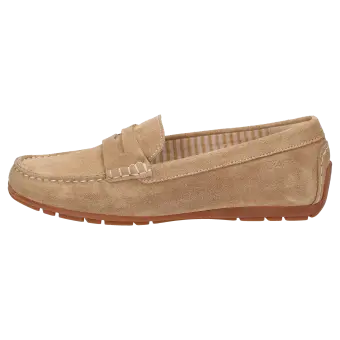 Im Inneren des Schuhs finden Sie ein Wechselfussbett, das Ihnen die Möglichkeit gibt, eigene Einlagen zu verwenden und so den Tragekomfort individuell zu gestalten. Der Mokassin vereint hochwertige Materialien mit einer eleganten Verarbeitung und ist somit ideal für modebewusste Frauen, die auf der Suche nach einem zuverlässigen Begleiter für ihre Freizeitaktivitäten sind.