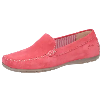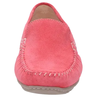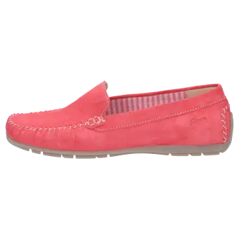 Flacher Damenslipper in Mokassin-Machart aus feinem Kalbvelour-Leder in klassischer Optik. Durchgehend textilgefüttert, mit weich gepolsterter Decksohle zum Herausnehmen und Austausch durch eine eigene Einlage. Weiche, flache Autofahrer-Gummisohle, die an der Ferse hochgezogen ist. Die bequeme Schuhweite G sorgt für optimale Zehenfreiheit.