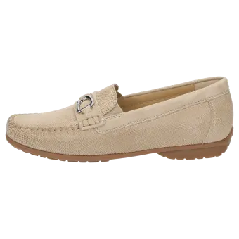 Im Inneren sorgt ein komfortables Wechselfussbett dafür, dass Sie bei Bedarf Ihre eigenen Einlagen nutzen können, um den Tragekomfort individuell anzupassen. Dieser Mokassin vereint modischen Stil mit Funktionalität und ist der perfekte Begleiter für all Ihre Freizeitaktivitäten.