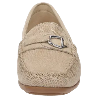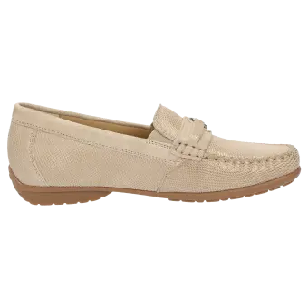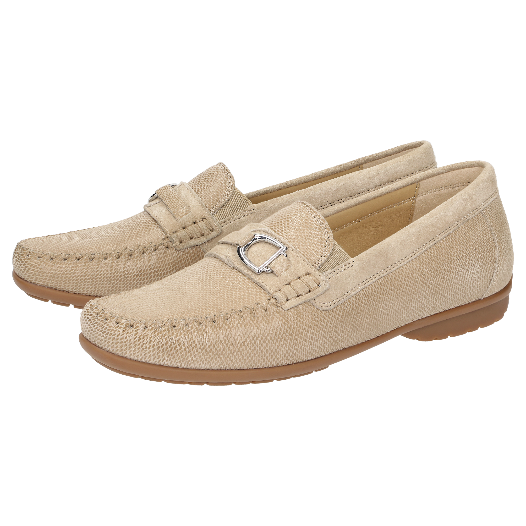 Dieser Mokassin ist die ideale Wahl für Damen, die Wert auf stilvolles Design und hohen Tragekomfort legen. Das Obermaterial besteht aus einer edlen Kombination von Ziegenleder in feiner Schlangenoptik und Ziegenvelour, die dem Schuh eine elegante Optik verleiht. Dank der H-Weite bietet dieser Schuh mehr Platz und ist somit perfekt für Personen mit breiteren Füssen geeignet.