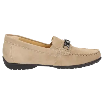 Dieser Slipper überzeugt durch ein besonders feines Velourleder, das dem Schuh eine elegante und zugleich moderne Optik verleiht. Dank der extraweiten H-Weite bietet der Schuh mehr Platz und ist somit ideal für Personen mit breiteren Füssen. Die flexible Gummisohle sorgt für ein angenehmes Laufgefühl und gibt sicheren Halt im Alltag.