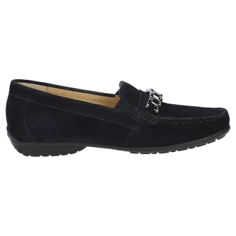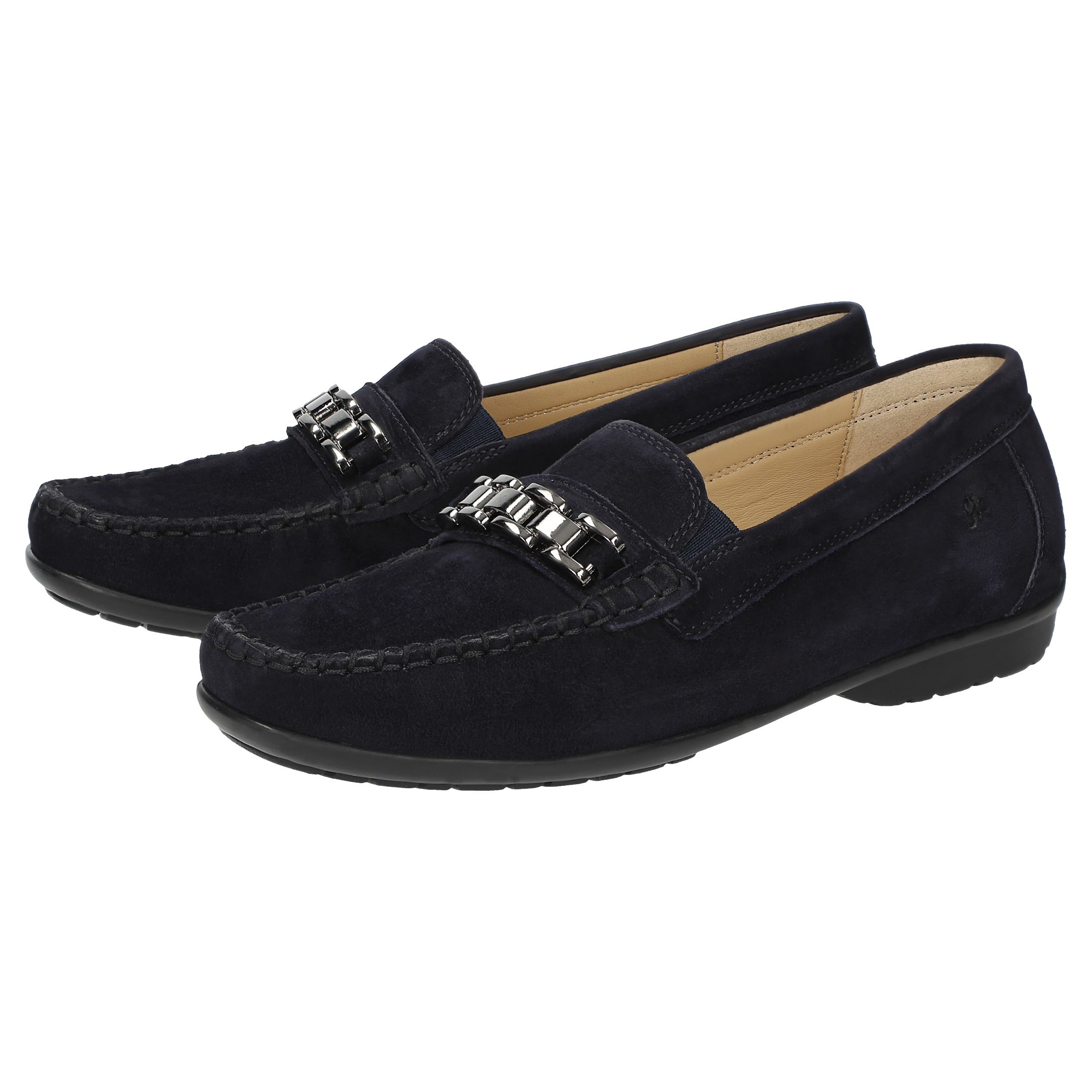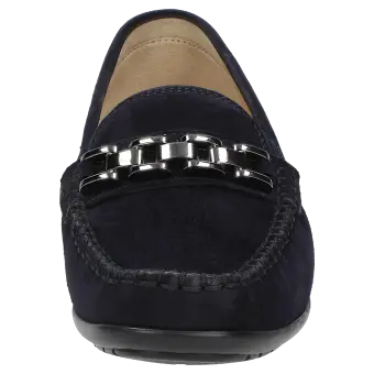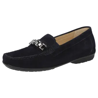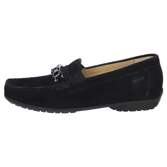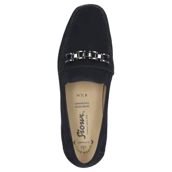 Märchenhaft bequemer Damen-Mokassin-Slipper mit modischer Metall-Garnitur aus sehr feinem Ziegenvelour - in Schuhweite H für vollere Füsse, in optimaler Passform und zeitloser Eleganz. Innen ausgestattet mit Lederfutter und weich gepolsterter, durchgehender Leder-Decksohle - auch geeignet zum Austausch mit der eigenen Einlage. Weiche und feine Gummisohle mit flachem Absatz. Ein typischer Damen-Mokassin von Sioux: seit Jahren ein gerne gekauftes Modell.