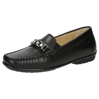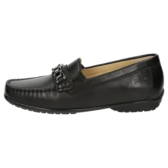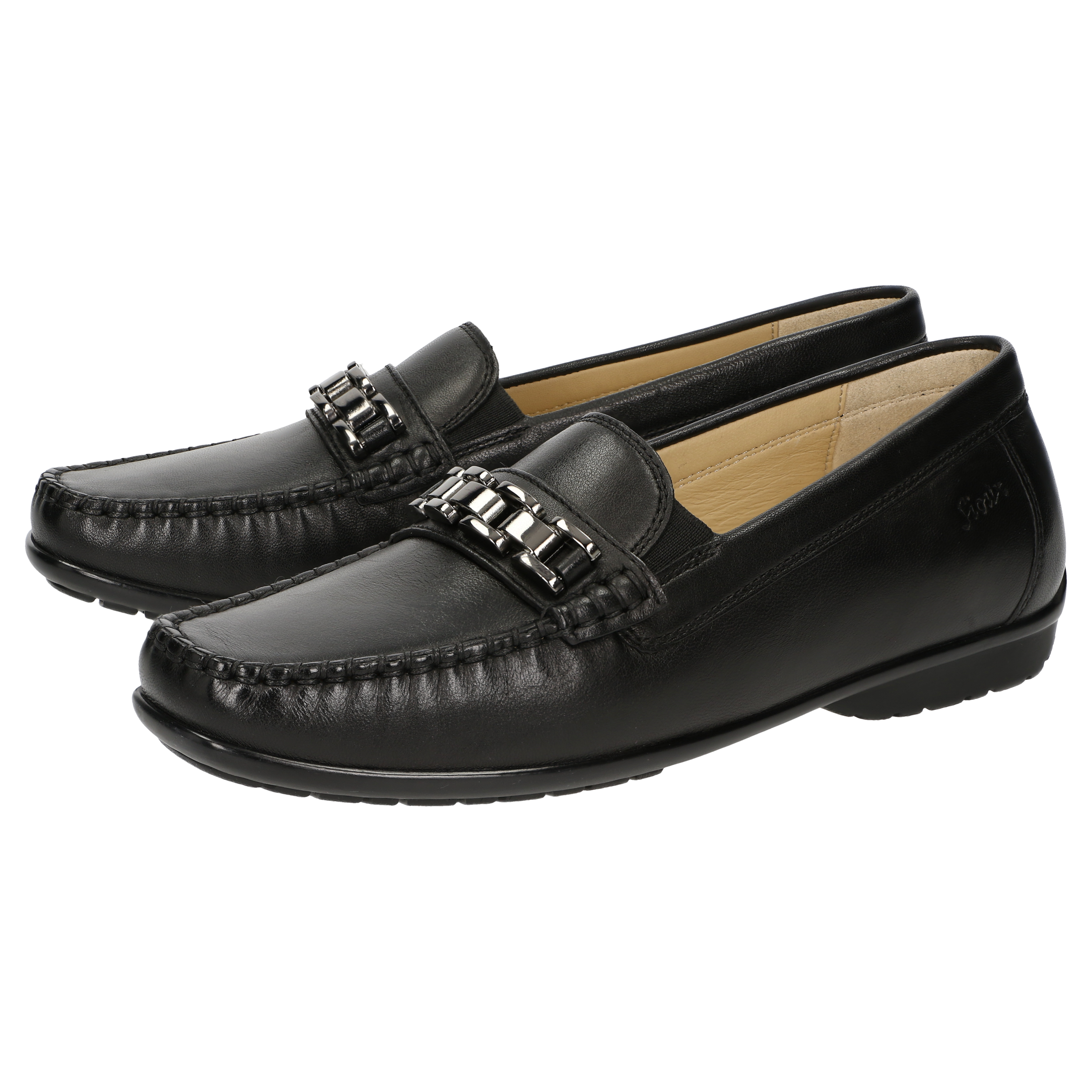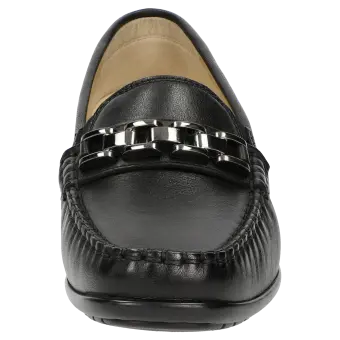 Märchenhaft bequemer Damen-Mokassin-Slipper mit modischer Metall-Garnitur aus sehr feinem Ziegenvelour - in Schuhweite H für vollere Füsse, in optimaler Passform und zeitloser Eleganz. Innen ausgestattet mit Lederfutter und weich gepolsterter, durchgehender Leder-Decksohle - auch geeignet zum Austausch mit der eigenen Einlage. Weiche und feine Gummisohle mit flachem Absatz. Ein typischer Damen-Mokassin von Sioux: seit Jahren ein gerne gekauftes Modell.