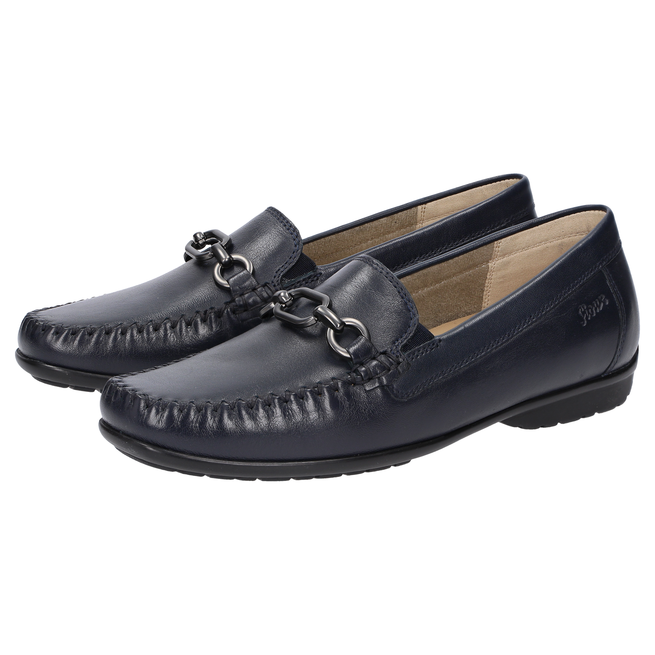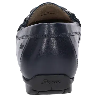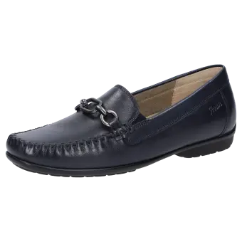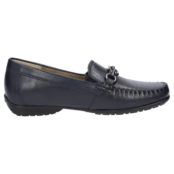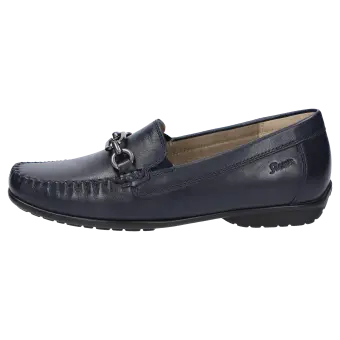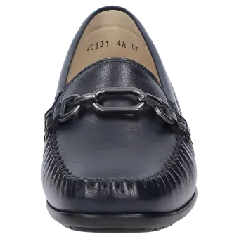 Sportlicher Damen-Mokassin in Weite H mit bewährter Passform. Handwerklich gefertigt aus handschuhweichem Lammnappa, mit bequemer Gummisohle und Wechselfussbett. Die zeitlose Metall-Garnitur macht dieses Modell zum Klassiker.
