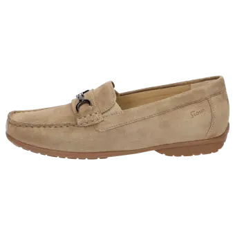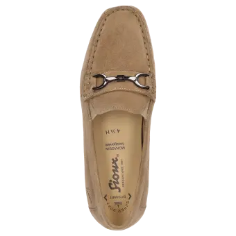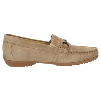 Dieser Mokassin für Damen bietet einen hohen Tragekomfort und ist ideal für Ihren Alltag. Das Obermaterial aus hochwertigem Ziegenvelour verleiht dem Schuh eine elegante Optik und sorgt für ein angenehmes Tragegefühl. Durch die H-Weite bietet der Mokassin mehr Platz und ist somit ideal für Personen mit breiteren Füssen. Die modische Gestaltung macht ihn zu einem stilvollen Begleiter für jede Gelegenheit.