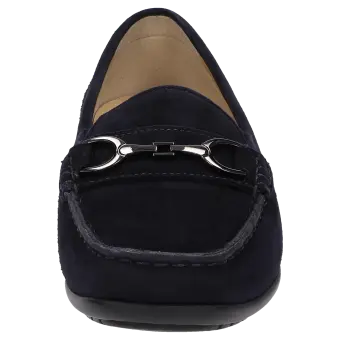 Dieser Mokassin für Damen bietet einen hohen Tragekomfort und ist ideal für Ihren Alltag. Das Obermaterial aus hochwertigem Ziegenvelour verleiht dem Schuh eine elegante Optik und sorgt für ein angenehmes Tragegefühl. Durch die H-Weite bietet der Mokassin mehr Platz und ist somit ideal für Personen mit breiteren Füssen. Die modische Gestaltung macht ihn zu einem stilvollen Begleiter für jede Gelegenheit.