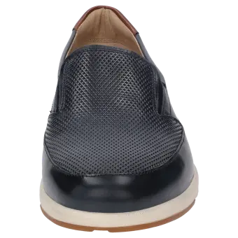 Dieser Slipper verbindet klassisches Design mit modernem Komfort und überzeugt mit hochwertigem Kalbleder in Glattoptik. Die normale G-Weite sorgt für eine optimale Passform, während die modische Optik und die schlichte Linienführung diesen Schuh zu einem vielseitigen Begleiter für den Alltag machen. Die robuste Gummisohle garantiert Rutschfestigkeit und dauerhaften Halt, sodass jeder Schritt sicher und angenehm bleibt - perfekt für einen Casual-Look mit Stil. Im Inneren punktet der Slipper mit einem praktischen Wechselfussbett. Dieses kann bei Bedarf einfach gegen eigene Einlagen getauscht werden und bietet so einen individuell anpassbaren Komfort. Durch die ausgewählten Materialien und die präzise Verarbeitung eignet sich der Schuh sowohl für längere Unternehmungen als auch für den täglichen Einsatz - ein Modell für alle, die Wert auf hochwertige Verarbeitung und zeitlose Eleganz legen.
