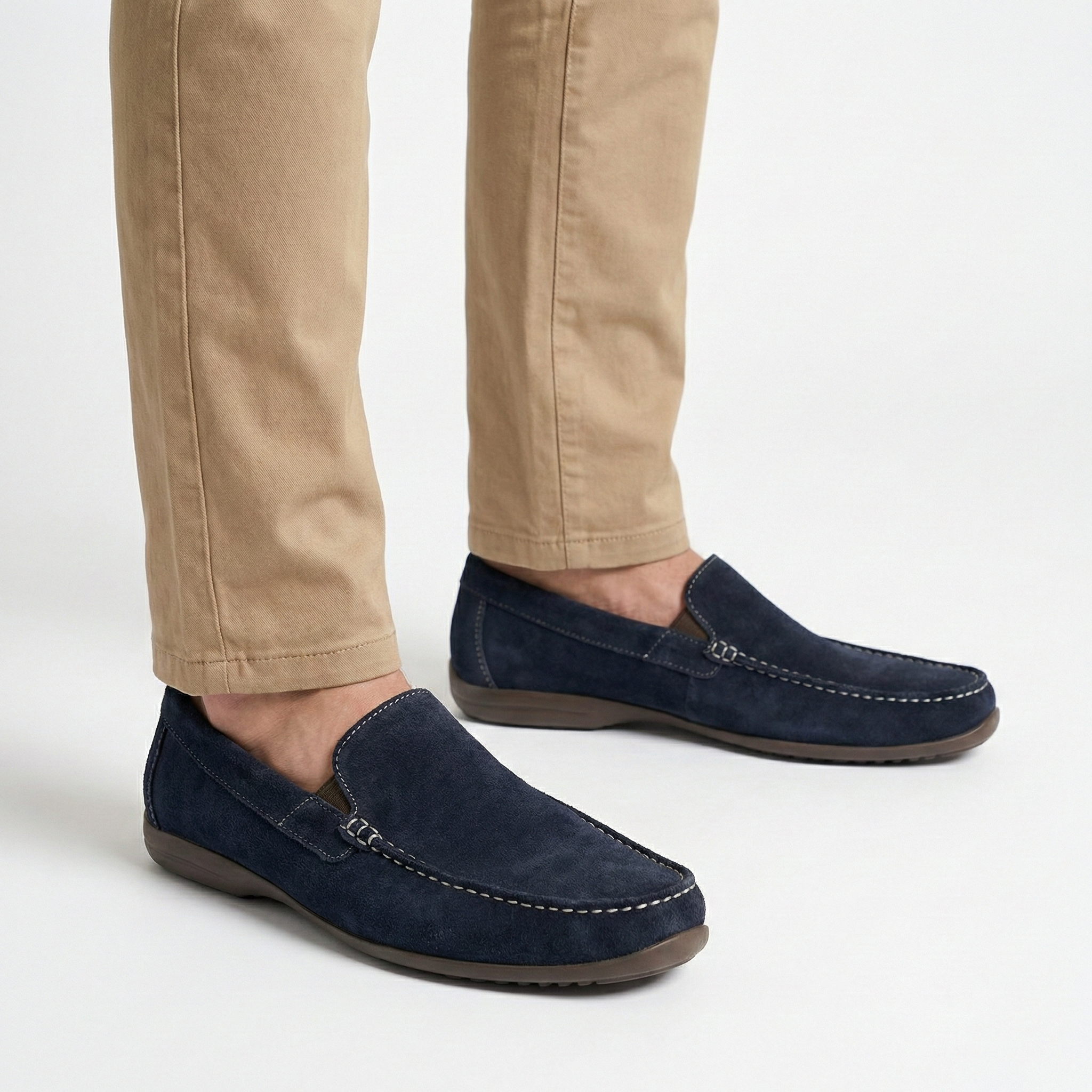Dieser Mokassin für Herren bietet Ihnen eleganten Stil und unvergleichlichen Komfort. Das hochwertige Obermaterial aus feinem Kalbvelour verleiht dem Schuh eine edle Optik und sorgt für Langlebigkeit. Durch die H-Weite bietet der Mokassin mehr Platz und ist ideal für Personen mit breiteren Füssen, wodurch ein hoher Tragekomfort gewährleistet wird.