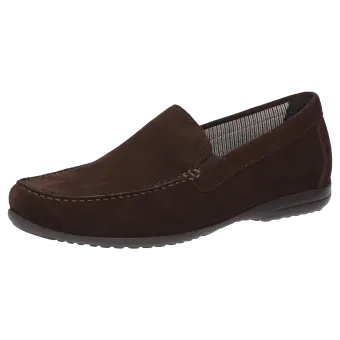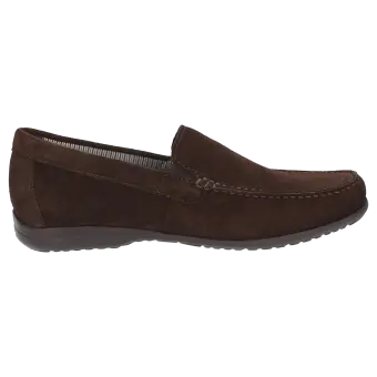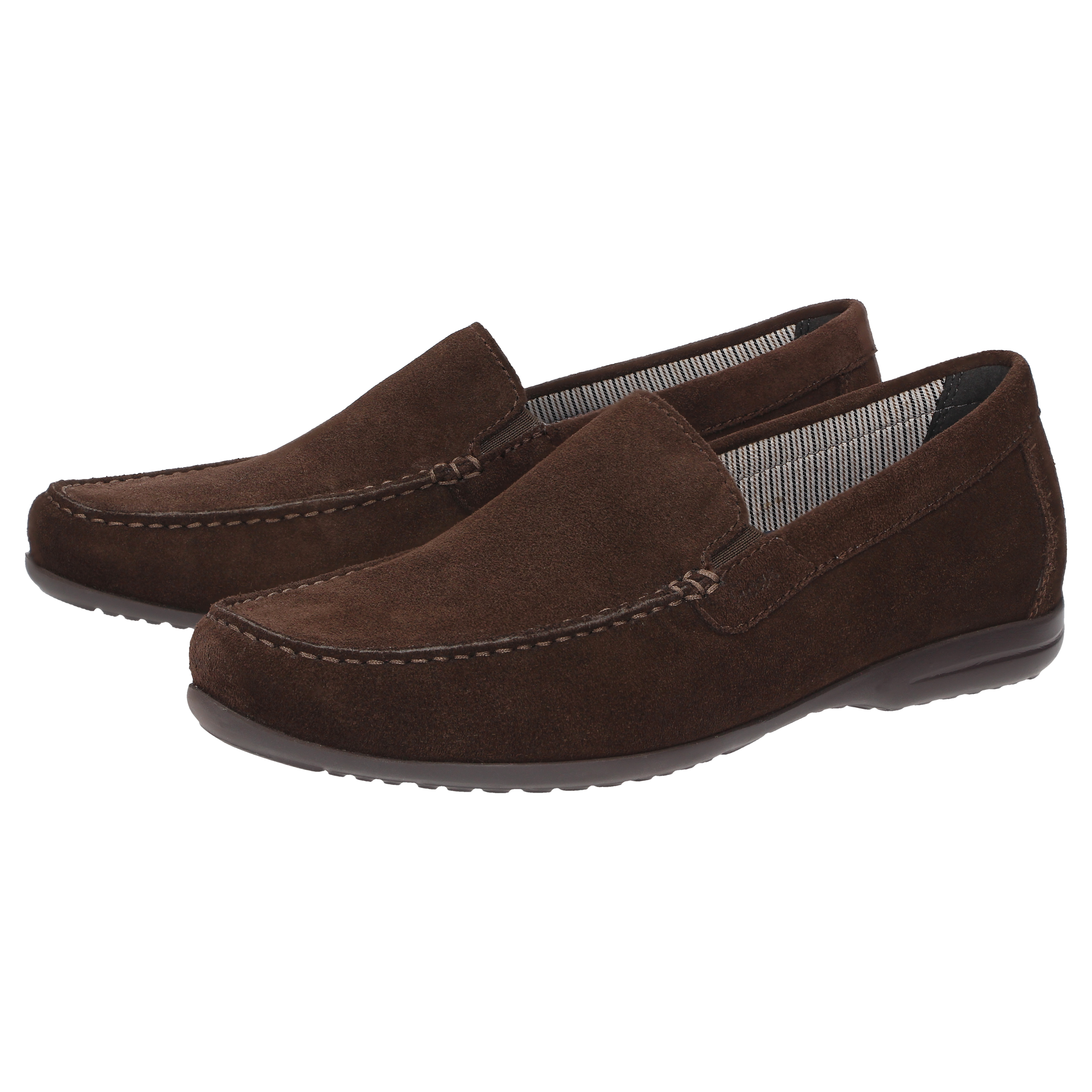 Dieser Mokassin für Herren bietet Ihnen eleganten Stil und unvergleichlichen Komfort. Das hochwertige Obermaterial aus feinem Kalbvelour verleiht dem Schuh eine edle Optik und sorgt für Langlebigkeit. Durch die H-Weite bietet der Mokassin mehr Platz und ist ideal für Personen mit breiteren Füssen, wodurch ein hoher Tragekomfort gewährleistet wird.