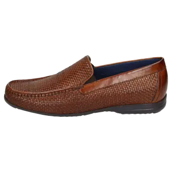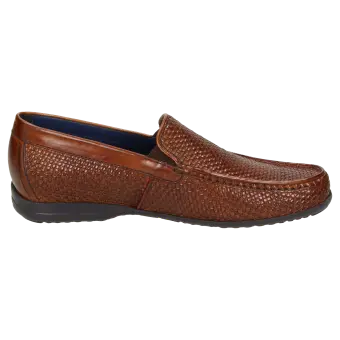 Dieser Mokassin ist die ideale Wahl für stilbewusste Herren, die auf Komfort und Qualität nicht verzichten möchten. Das edle Obermaterial kombiniert Büffelflechtleder mit natürlichem Kalbleder, was dem Schuh eine luxuriöse und zeitlose Optik verleiht. Dank der weiten Passform (H-Weite) bietet dieser Mokassin mehr Platz und ist somit ideal für Personen mit breiteren Füssen, die Wert auf Bequemlichkeit legen.