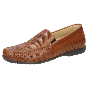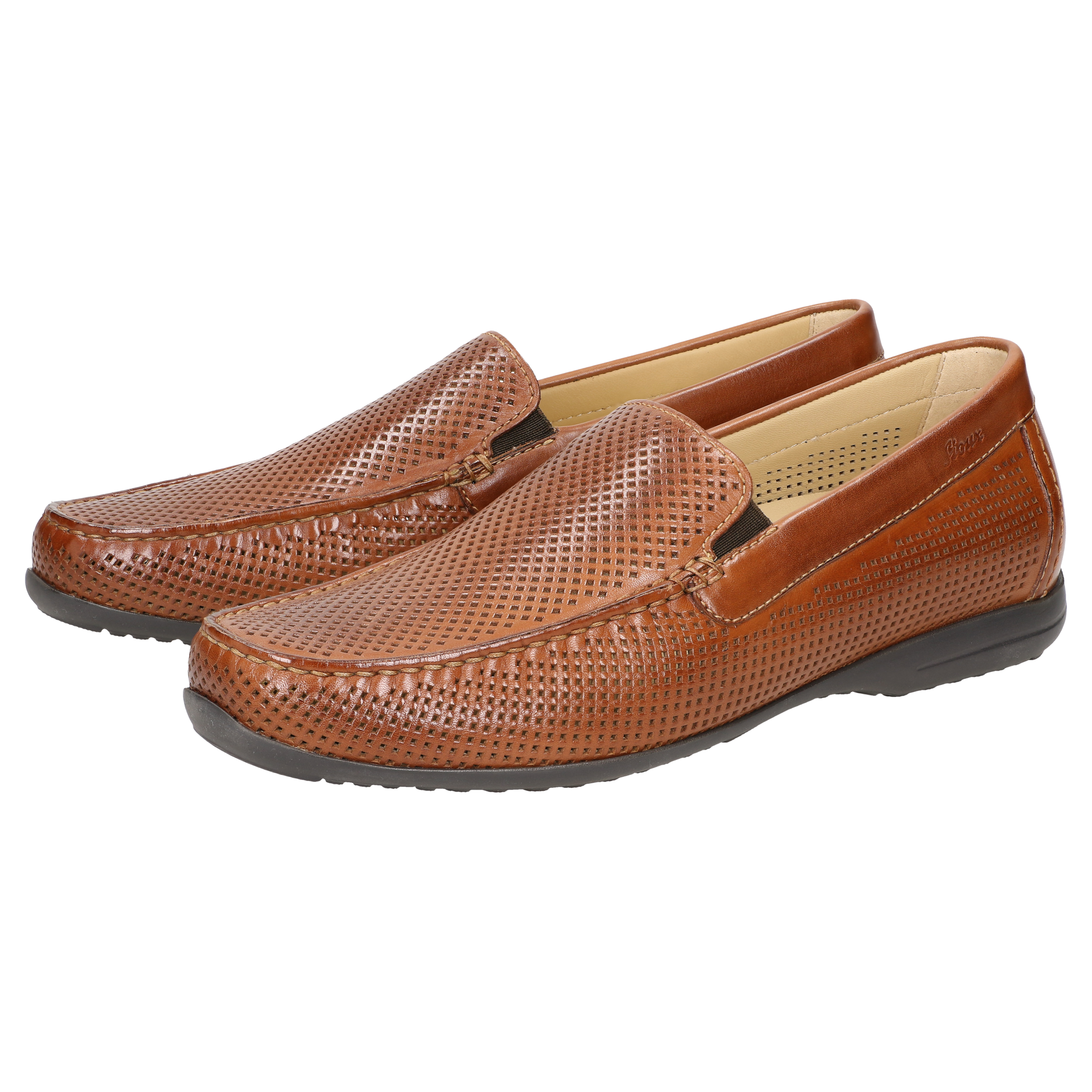 Dieser Mokassin für Herren ist die ideale Wahl für alle, die Wert auf Stil und hohen Tragekomfort legen. Das Obermaterial besteht aus natürlichem Kalbleder und bietet eine weite Passform (H-Weite), die besonders für Personen mit breiteren Füssen geeignet ist. Die hochwertige Verarbeitung und die elegante Optik machen diesen Mokassin zu einem vielseitigen Begleiter für den Alltag.