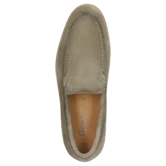 Dieser Slipper für Herren vereint ein zeitloses Design mit erstklassigem Komfort und ist der ideale Begleiter für den Sommer. Das feine Kalbvelour sorgt für eine edle Optik und ein angenehmes Tragegefühl auf der Haut. Durch die normale Weite (G-Weite) bietet der Schuh optimalen Sitz und lässt sich bequem im Alltag tragen. Die hochwertige Verarbeitung spiegelt sich in jedem Detail wider und macht diesen Slipper zu einem echten Highlight für stilbewusste Herren. Die Gummisohle sorgt für einen sicheren Auftritt und gibt gleichzeitig die nötige Flexibilität beim Gehen. Dank des durchdachten Schnitts lässt sich der Slipper einfach an- und ausziehen, während das weiche Velourmaterial den Fuss sanft umschliesst. Für alle, die Wert auf Komfort und stilvolles Auftreten legen, ist dieser Slipper im Sommer unverzichtbar.