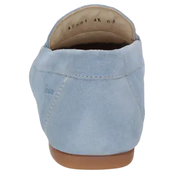 Dieser Slipper für Damen überzeugt durch seine elegante Mokassin-Optik und das feine Kalbvelour. Das hochwertige Velourmaterial sorgt für ein besonders angenehmes Tragegefühl und unterstreicht die stilvolle Ausstrahlung des Schuhs. Die normale Weite (G-Weite) bietet optimalen Sitz, während die flexible Gummisohle ein leichtes und sicheres Abrollen ermöglicht. Im Inneren begeistert der Slipper mit einem herausnehmbaren Wechselfussbett, das bei Bedarf den Einsatz individueller Einlagen erlaubt - für einen persönlichen Tragekomfort. Die sorgfältige Verarbeitung macht dieses Modell zu einer idealen Wahl für alle, die Wert auf Komfort und Qualität im Alltag legen.