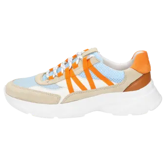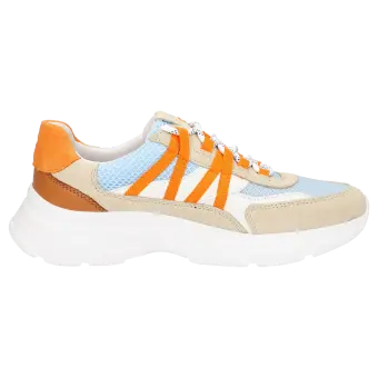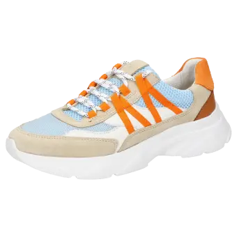 Klassischer Damen-Sneaker aus einer Kombination von feinem Kalbvelour, Kalbleder und Textil-Mesh. Besonders bequem durch den gepolstertem Einschlupf, der Komfortweite G, und der auftrittsdämpfenden Leichtgummisohle. Innen komplett mit modernem Mesh-Futter und Microfaser-Decksohle ausgestattet. Die super-softe Decksohle ist herausnehmbar und zum Austausch mit einer eigenen Einlage geeignet - ein Modell das viel Bequemlichkeit bietet.