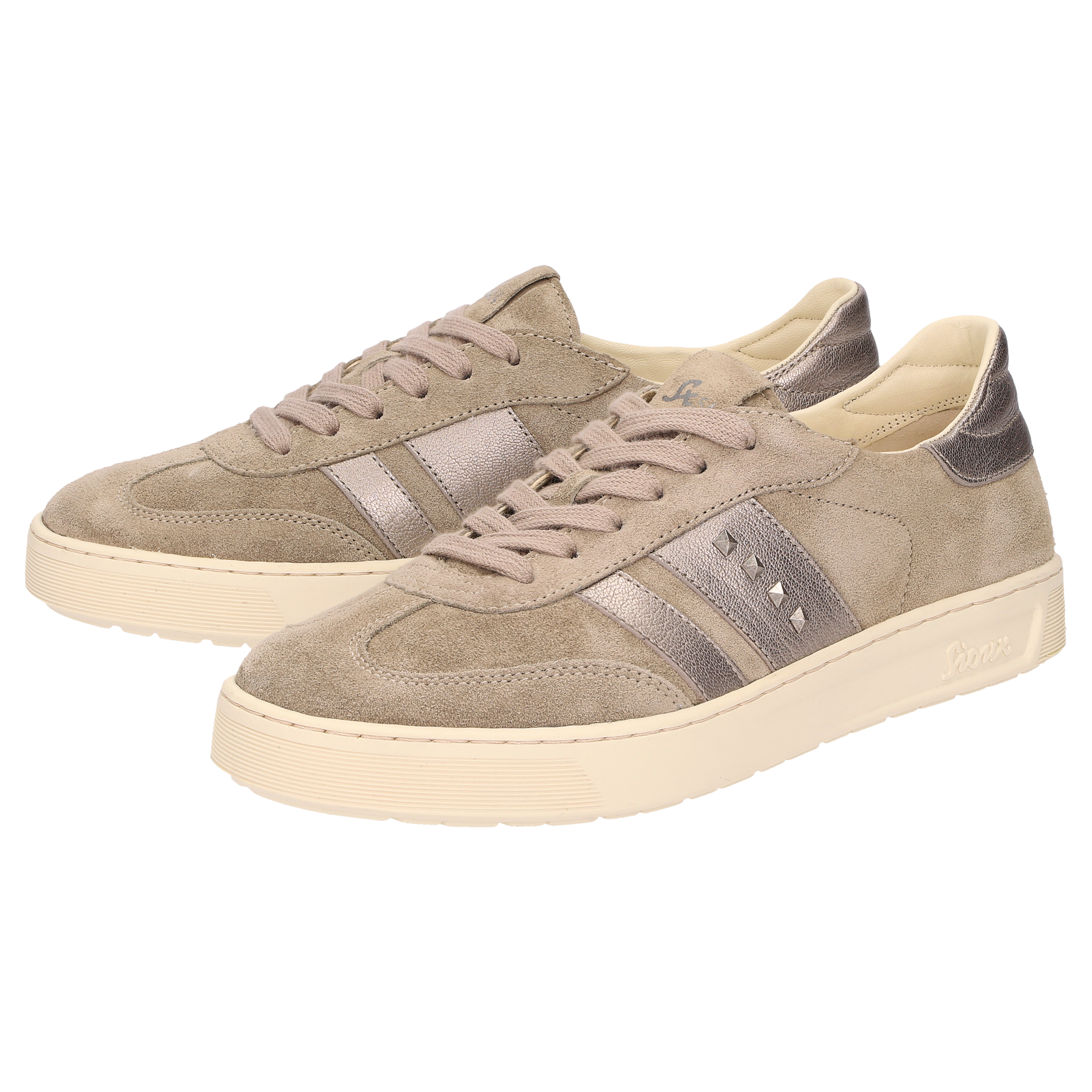 Dieser Sneaker aus der Kooperation mit Maite Kelly begeistert durch seine modische Optik und die hochwertige Verarbeitung. Das Obermaterial besteht aus einer edlen Lederkombination, die für einen stilvollen und zugleich sportlichen Look sorgt. Die normale Weite (G-Weite) bietet optimalen Tragekomfort bei jedem Schritt, während die flexible Gummisohle für sicheren Halt sorgt.