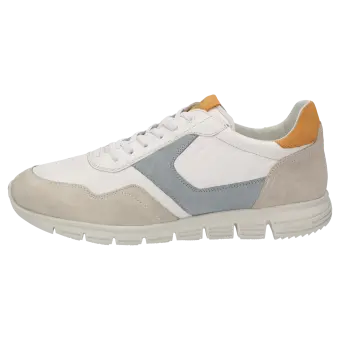 Dieser Sneaker für Herren überzeugt auf ganzer Linie durch seine moderne Optik und höchsten Tragekomfort. Das Obermaterial aus einer hochwertigen Lederkombination sorgt für ein angenehmes und strapazierfähiges Tragegefühl. Dank der normalen Schuhweite (G-Weite) passt dieser Schuh optimal und bietet eine bequeme Passform für jeden Fuss. Die flexible Gummisohle unterstützt einen sicheren Stand und ein leichtes, bequemes Laufgefühl. Ein besonderes Merkmal dieses Modells ist der MokRunner - eine innovative Kombination aus Mokassin und Sneaker, die die Vorzüge beider Schuhtypen vereint. Im Inneren sorgt ein Wechselfussbett dafür, dass eigene Einlagen problemlos eingesetzt werden können. Das geringe Schuhgewicht rundet das Trageerlebnis ab und macht diesen Sneaker zum idealen Begleiter im Alltag für alle, die Wert auf Komfort und Stil legen.