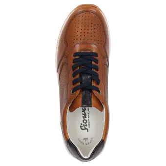 Im Inneren des Sneakers sorgt das Wechselfussbett für zusätzlichen Komfort und ermöglicht es Ihnen, bei Bedarf Ihre eigenen Einlagen zu verwenden. Dieser Schuh kombiniert Stil und Bequemlichkeit, sodass Sie sich den ganzen Tag über wohlfühlen. Ein perfekter Begleiter für modebewusste Herren, die Wert auf Qualität und Komfort legen.