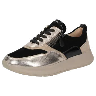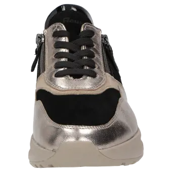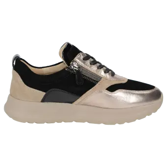 Dieser Sneaker ist ein stilvoller Damenschuh, der durch seine modische Optik überzeugt. Das hochwertige Obermaterial aus einer sorgfältig ausgewählten Lederkombination sorgt für eine elegante Ausstrahlung und ein angenehmes Tragegefühl. Die Gummisohle bietet optimale Flexibilität und Sicherheit im Alltag. Die Extraweite J bedeutet, dieser Schuh ist ideal für Personen mit breiten Füssen und sorgt für einen besonders hohen Tragekomfort.