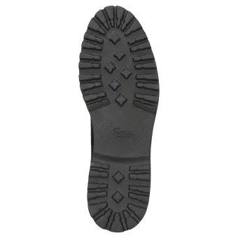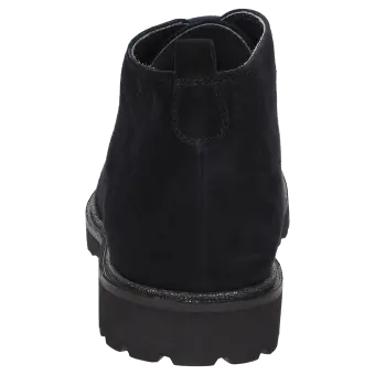 Damen-Schnür-Bootie in bequemer H-Extra-Weite mit Lasche an der Ferse. Gefertigt aus sehr weichem Lammvelour-Leder und gefüttert mit Leder und einem Stretch-Textilfutter im Vorfussbereich. Für Hallux-Valgus-Füsse geeignet! Herausnehmbare, lederbezogene Decksohle mit weicher Dämpfung - auch geeignet zum Austausch mit der eigenen Einlage. Profilierte, herbstlich anmutende Leichtgummisohle mit modischem Glitzereffekt-Rahmen.
